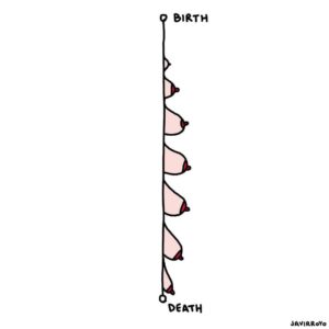 Một minh hoạ dí dỏm nhưng đầy suy ngẫm của nghệ sĩ Javi Royo. Tác phẩm dùng hình ảnh cơ thể người để nói về trọng lực và vòng đời 😅